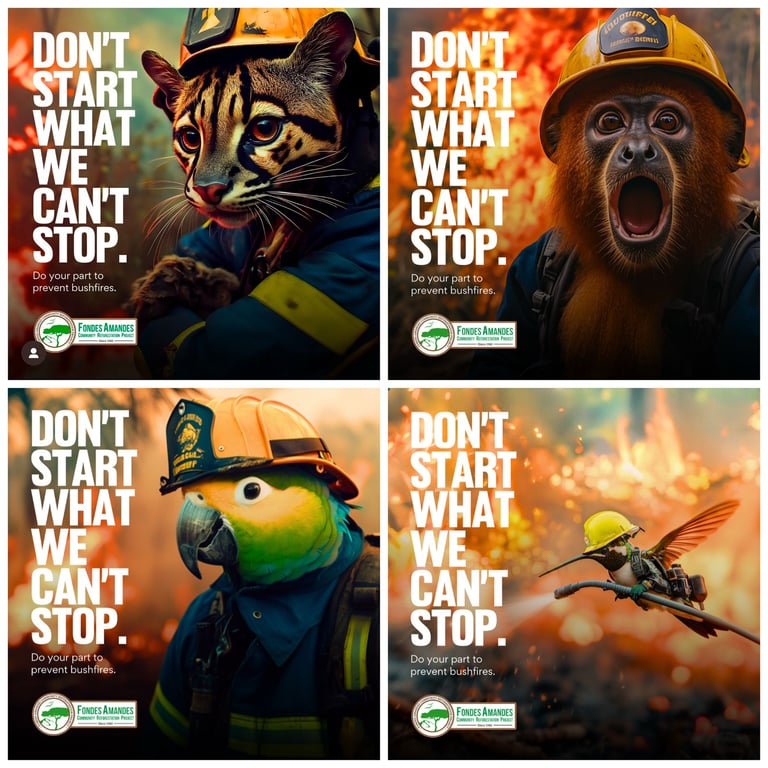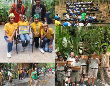 Since 1982, the Fondes Amandes Community Reforestation Project (FACRP) has pioneered a wide range of initiatives that restore ecosystems while empowering communities. Our work spans bush and forest fire prevention, with community-led patrols, firebreaks, and awareness campaigns to safeguard watersheds; reforestation efforts through our Clean Trees Organic Nursery, which produces thousands of native seedlings each year; and the FACRP Field School, which offers hands-on training, internships, and citizen science opportunities for local and international students. We also lead wildlife monitoring projects, documenting the return of biodiversity to newly restored landscapes, and integrate culture and community engagement, blending music, art, and traditional ecological knowledge to inspire environmental stewardship. Together, these projects reflect FACRP’s holistic approach to conservation, climate resilience, and community-driven transformation.